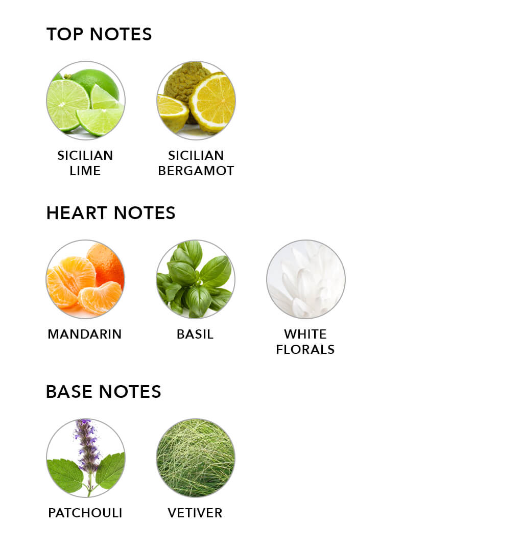 Bursting with vibrant Sicilian lime and juicy mandarin, it brings an irresistible zestiness, while the sweet, peppery freshness of basil adds a modern, aromatic twist.