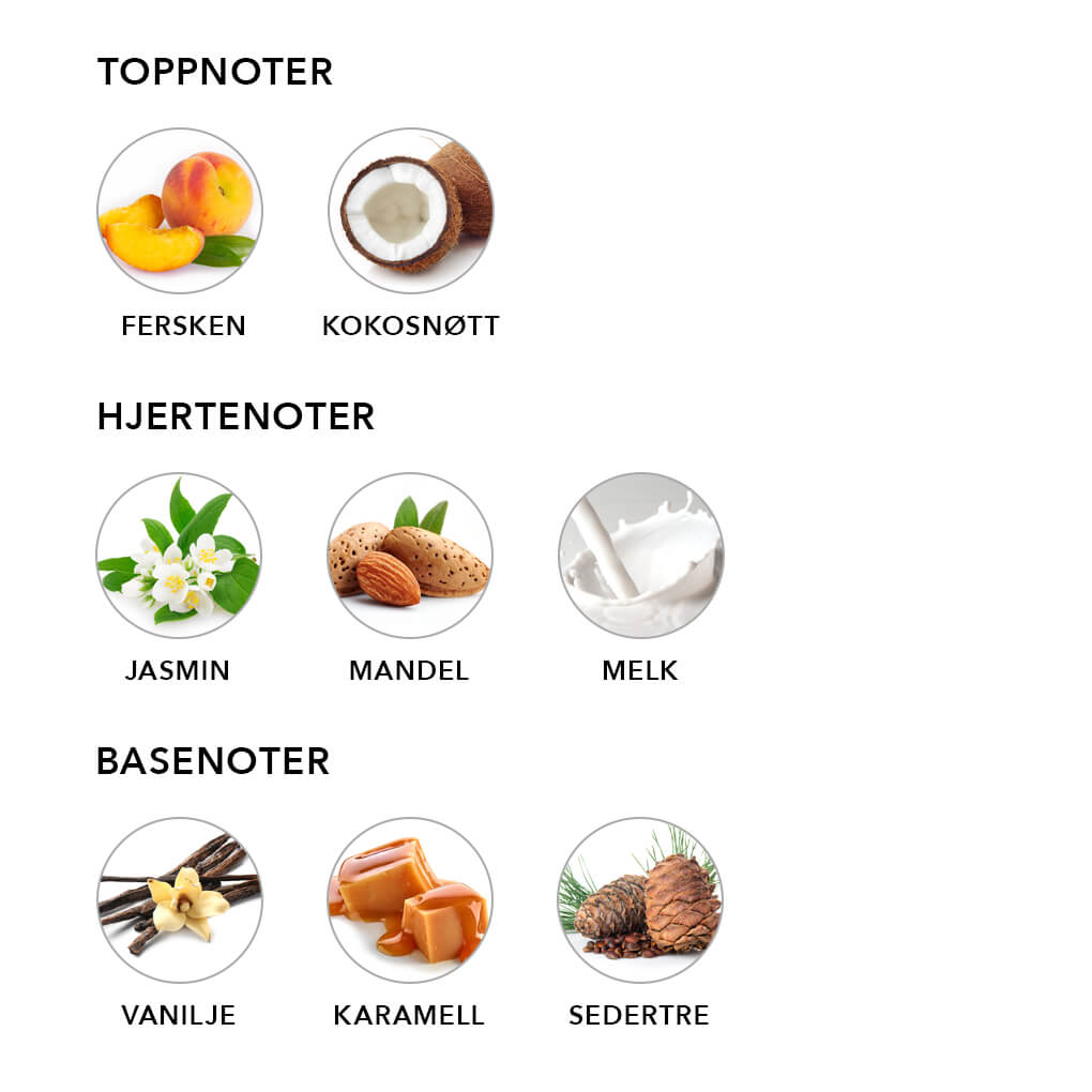 The softly layered fragrance fills the air with notes of sweet vanilla and creamy coconut, evoking the serenity of a tropical retreat.